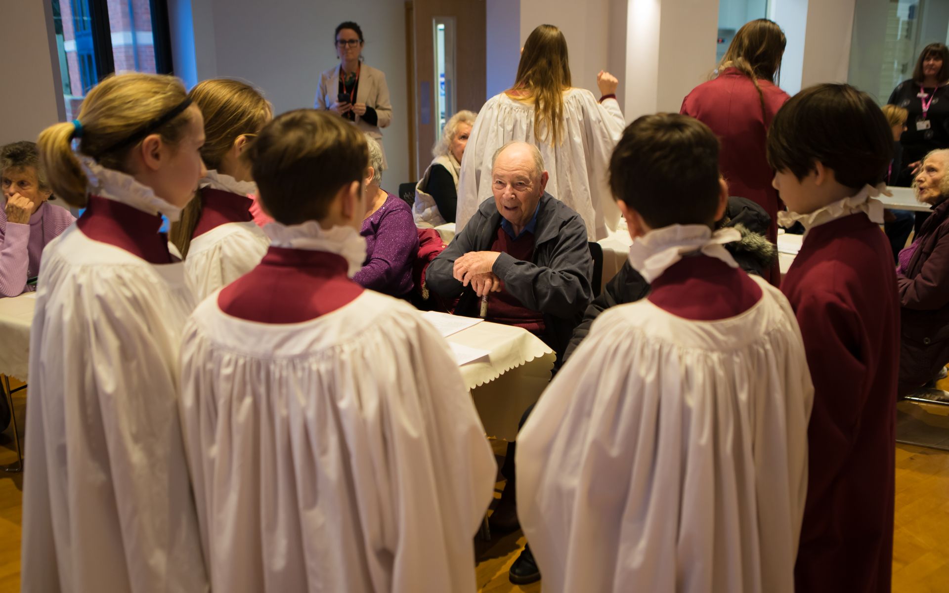 Around 75 people attended the tea on Thursday afternoon and enjoyed terrific singing by the choir, followed by some joint singing of classics from our visitor’s younger days – and they really sung with great gusto! They also enjoy conversations with our young choristers, who are always so polite and welcoming, engaging in conversation with great maturity. A big thank you to Mrs Nicholson, who organises these events and to Mrs Glynne-Jones, without whom this high-quality choral music simply wouldn’t happen.