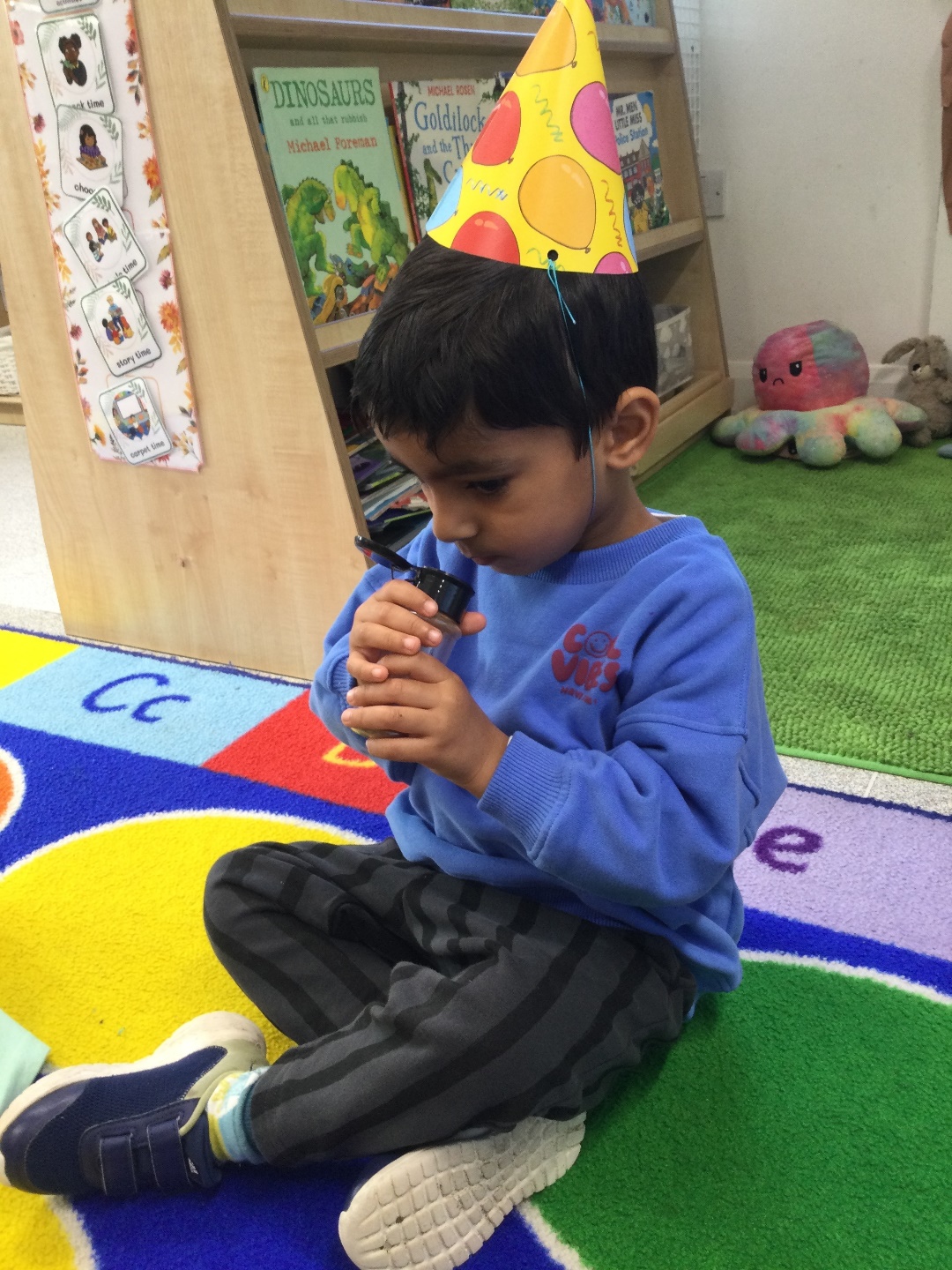 Midweek brought a new adventure as we explored our sense of smell. The children took turns sniffing mystery smell pots — some familiar, others more surprising! Scents included minty toothpaste, vinegar, garlic powder, ginger, and a gentle floral perfume. There were lots of funny faces, lots of giggles (especially at the garlic!), and lots of great discussion as the children tried to work out where they may have smelled these scents before. This activity sparked wonderful conversations about home, food, bath time, and even grandparents! It was such a joy to see how one little smell could unlock a memory or a story.