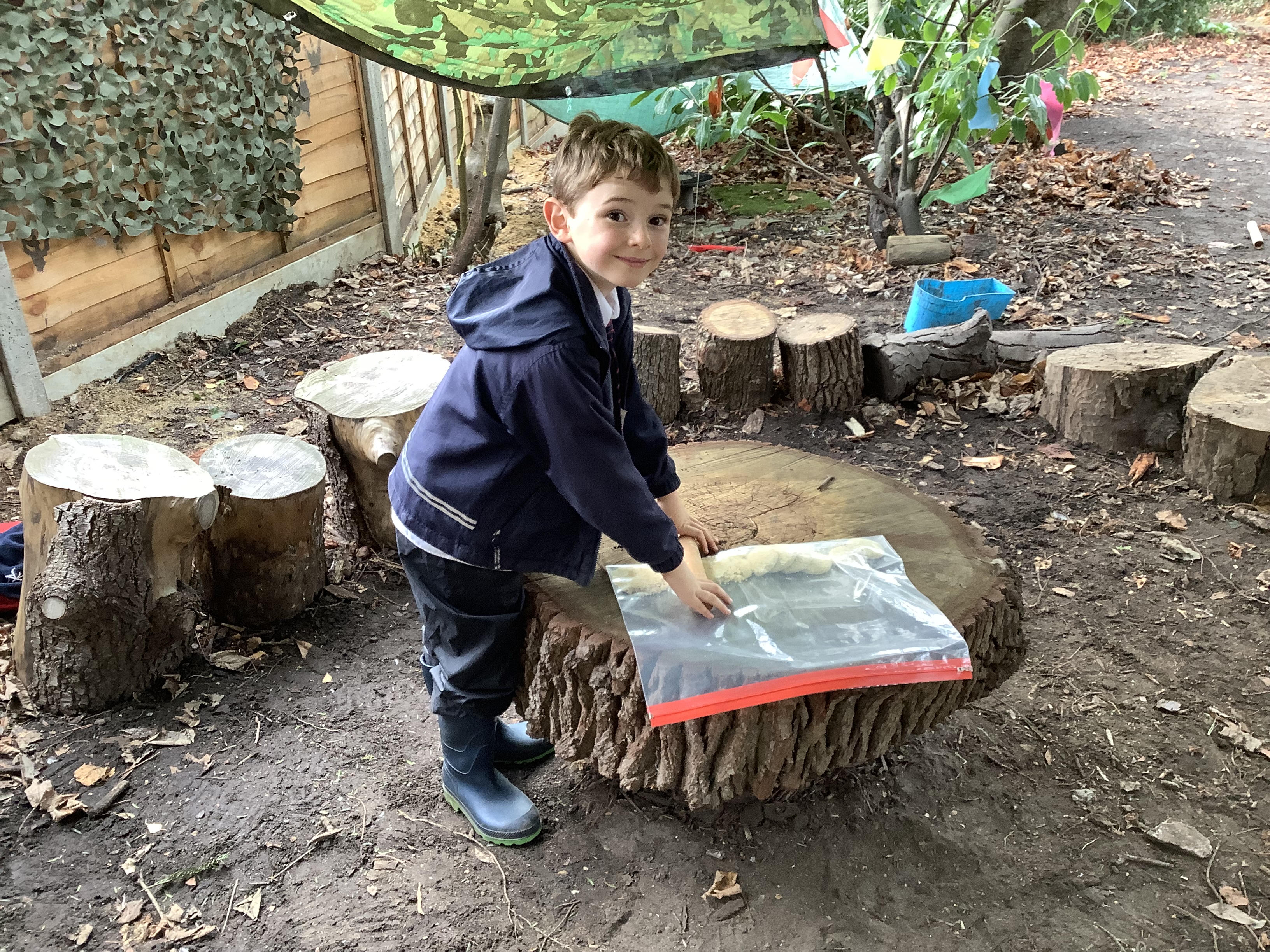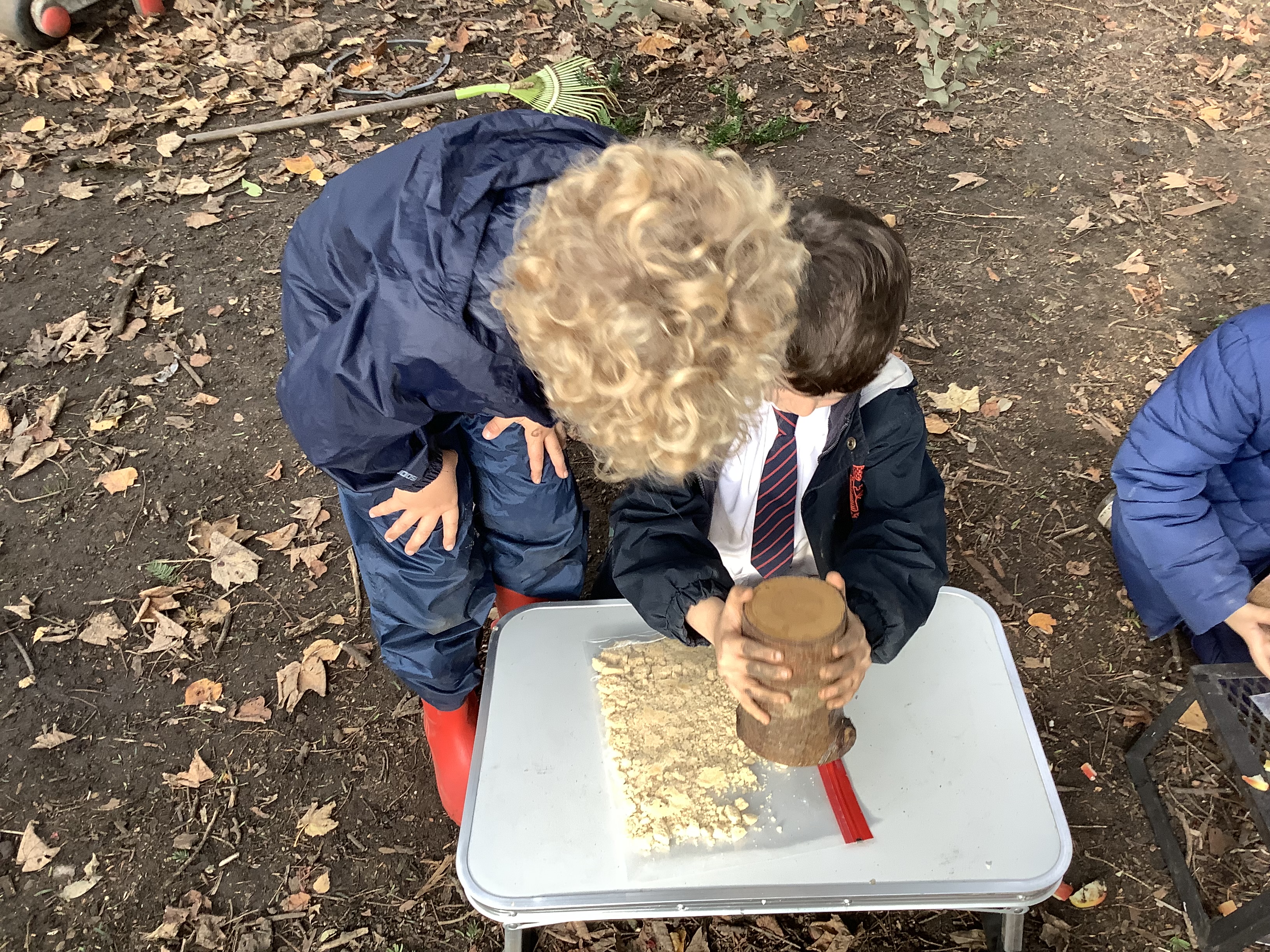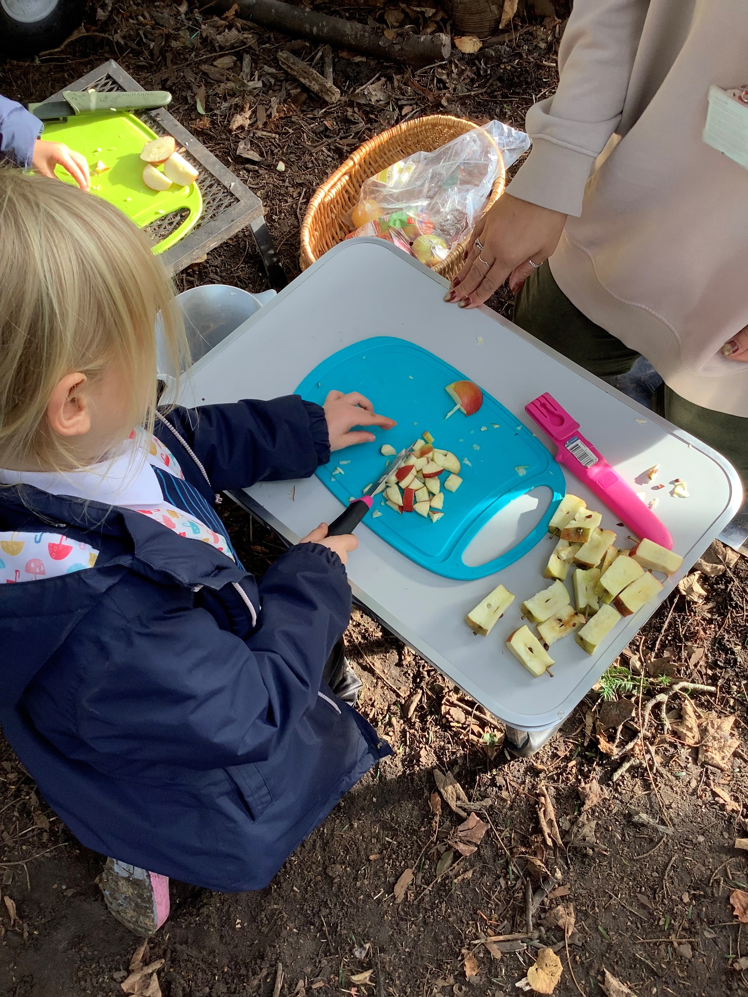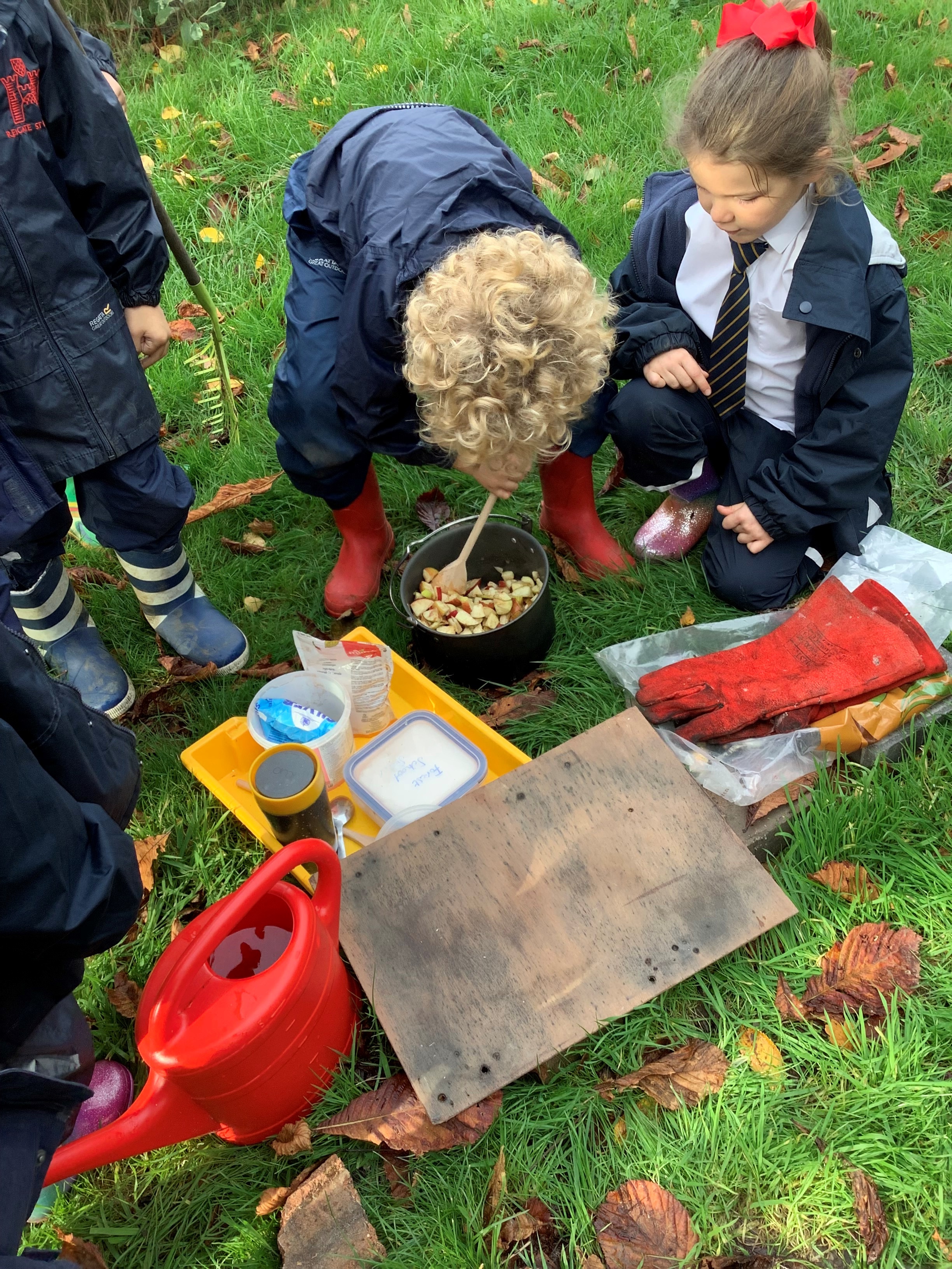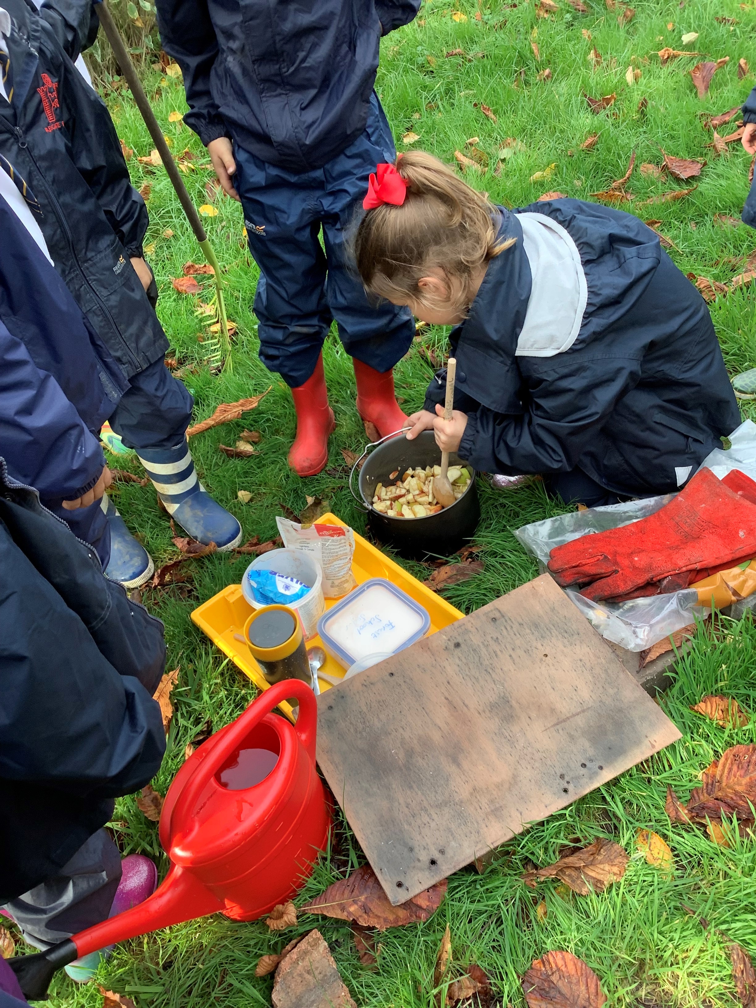 The children then added water, cinnamon and a tiny bit of sugar to create a delicious crumble, which of course, we all very much enjoyed eating!