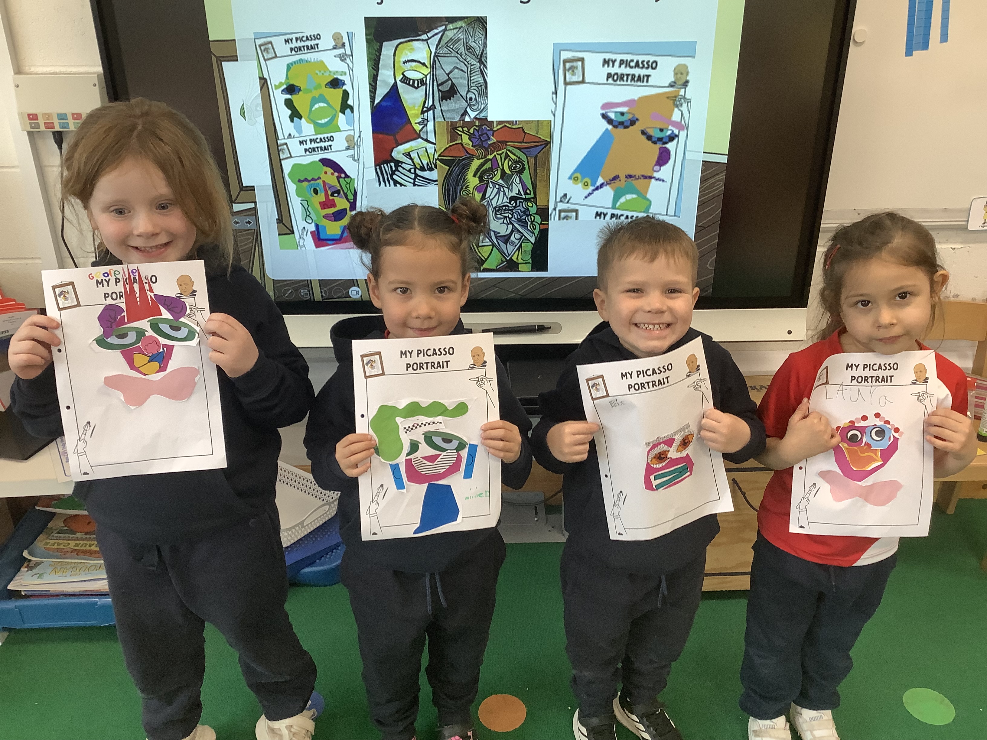 This week, the children explored the fascinating world of Pablo Picasso! They discovered that Picasso was a famous Spanish artist who loved experimenting with shapes and colours. We introduced them to Cubism, an art style where pictures are broken into shapes like squares, triangles, and rectangles, then rearranged in a fun, mixed-up way.