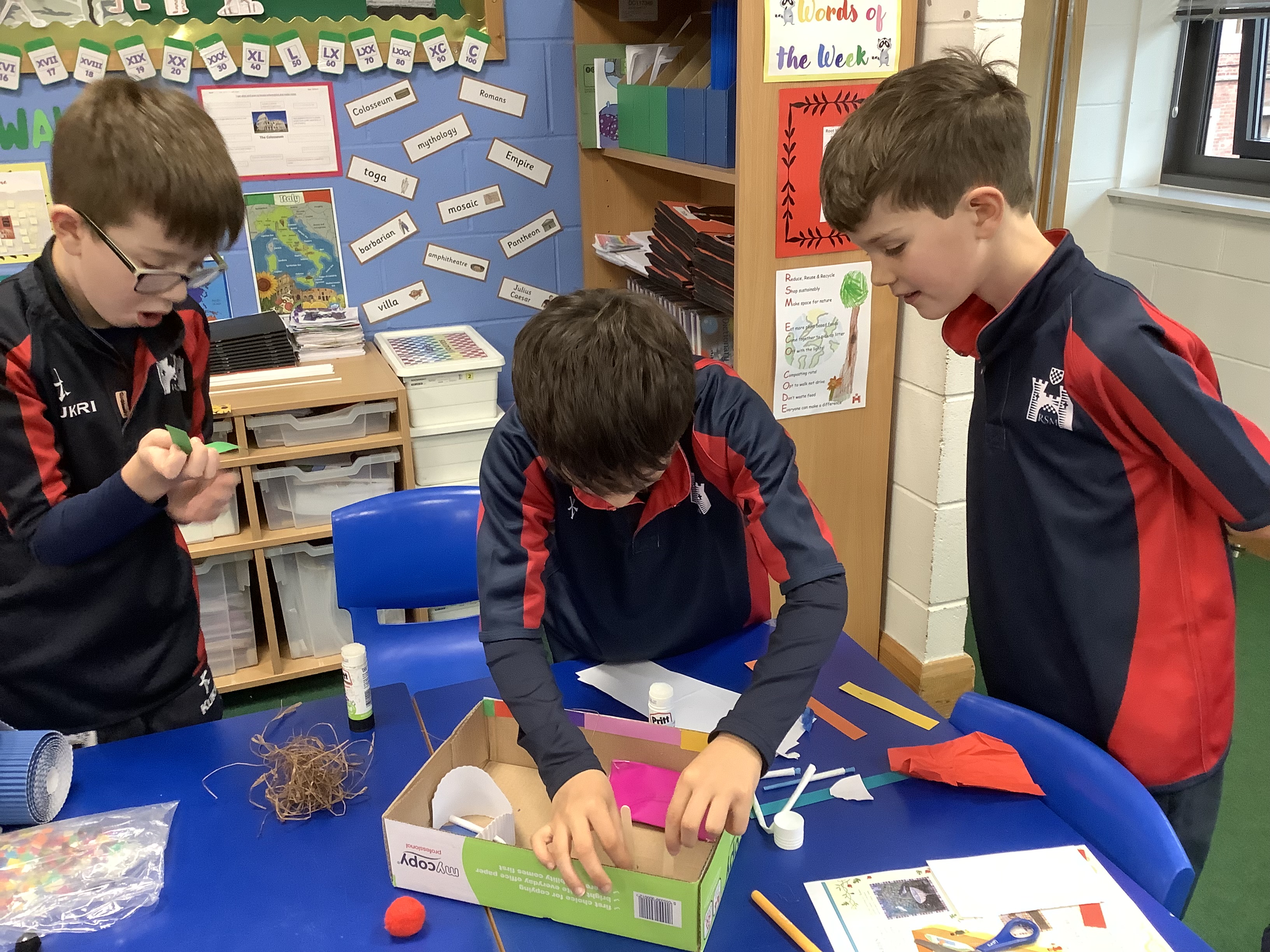 This week, the children in Year 3 have been busy designing and building their own Roman villas using recycled boxes and materials brought from home. They explored the different rooms found in a traditional Roman villa, learning their Latin names and investigating how each space was used. They also studied Roman murals and mosaics, comparing the art and layout of ancient homes with those we see today. The finished villas demonstrated wonderful creativity, thoughtful design choices, and a brilliant understanding of Roman life.