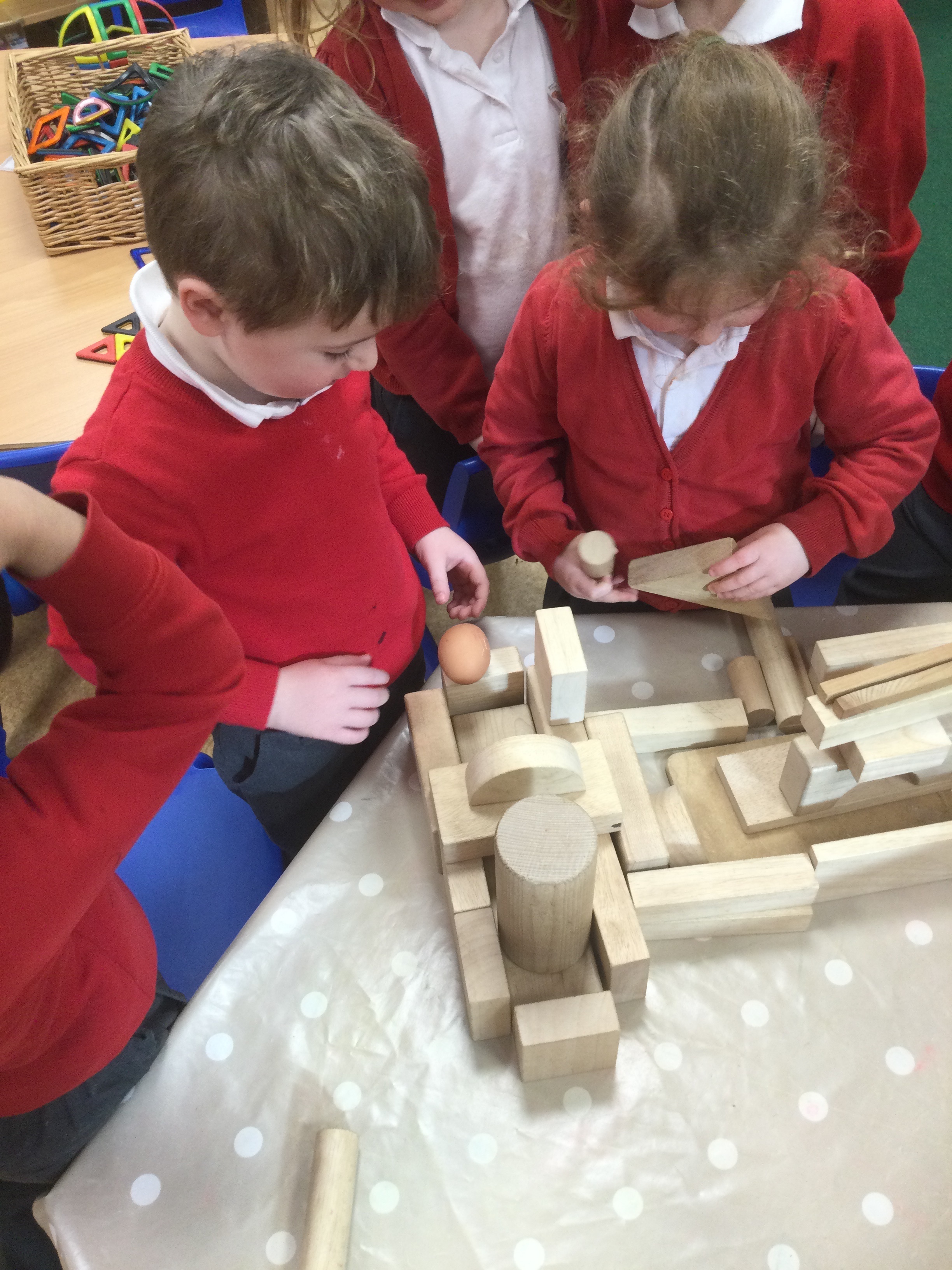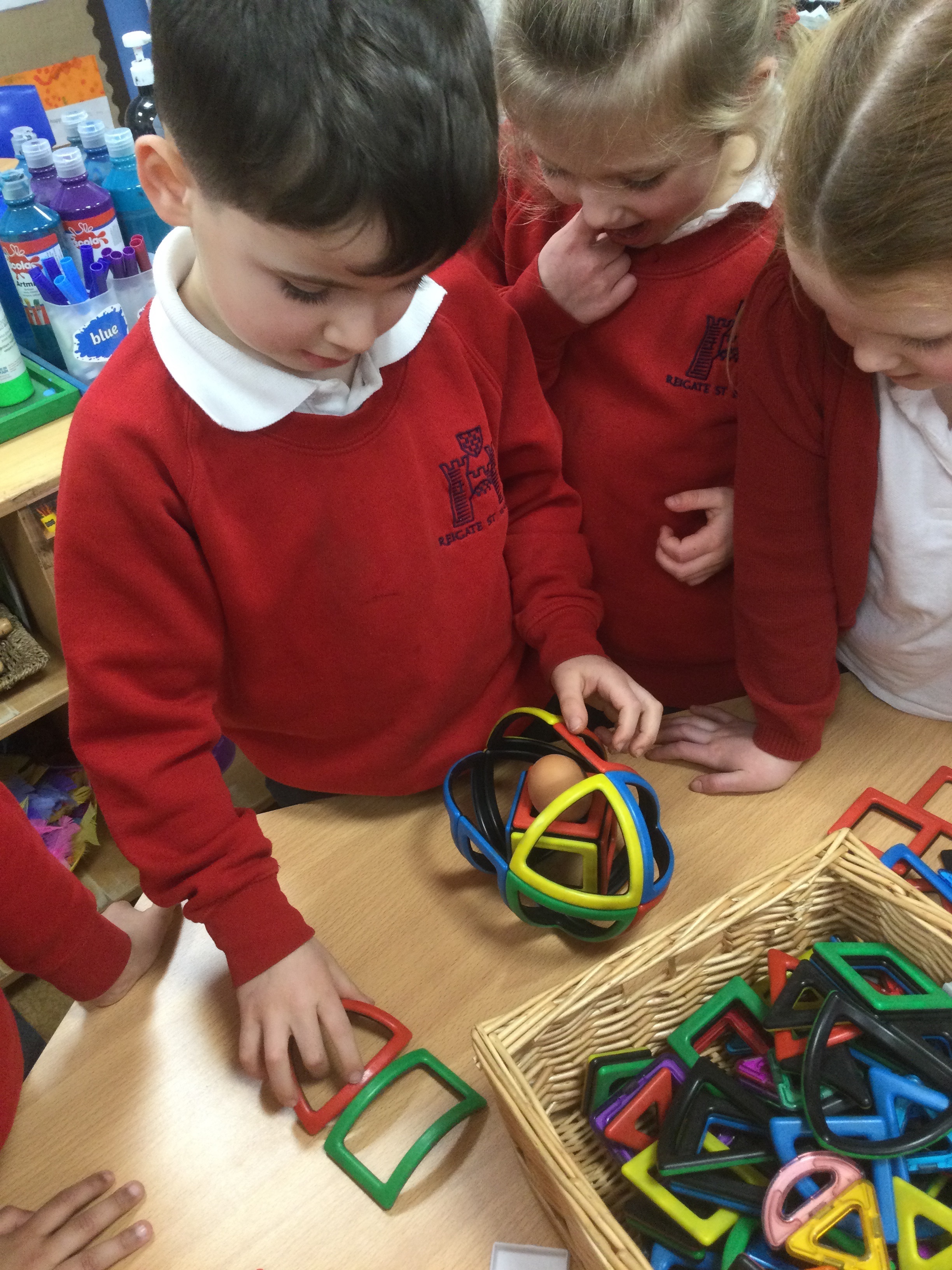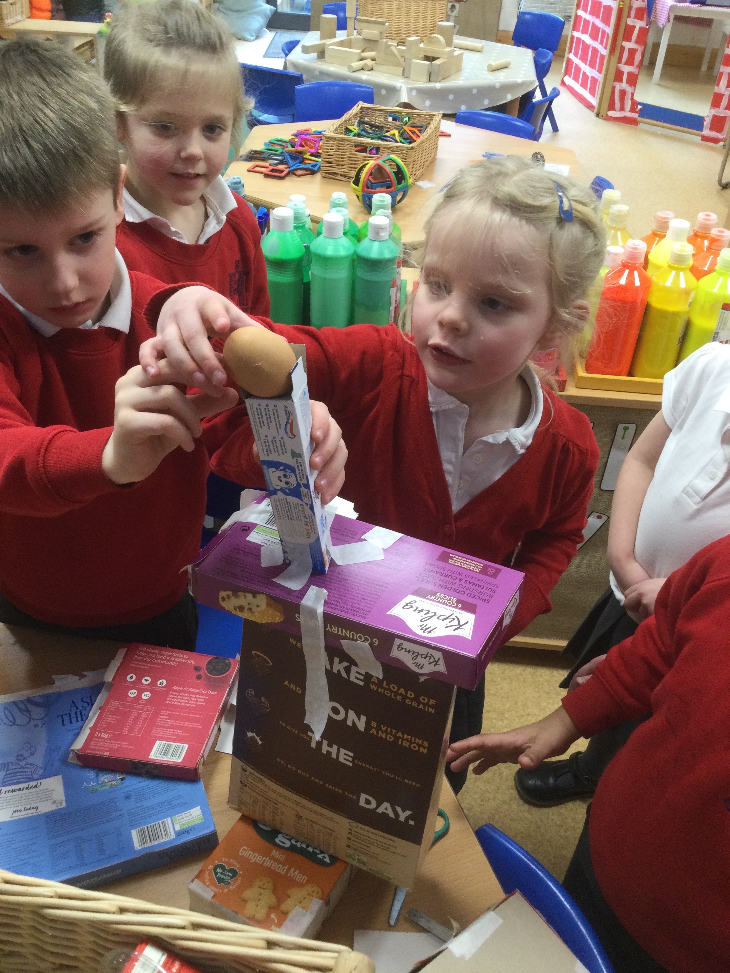 To test the strength of their structures, Mr Strong even left some boiled eggs (his favourite!) which the children carefully placed on top to see which structures could hold the weight.