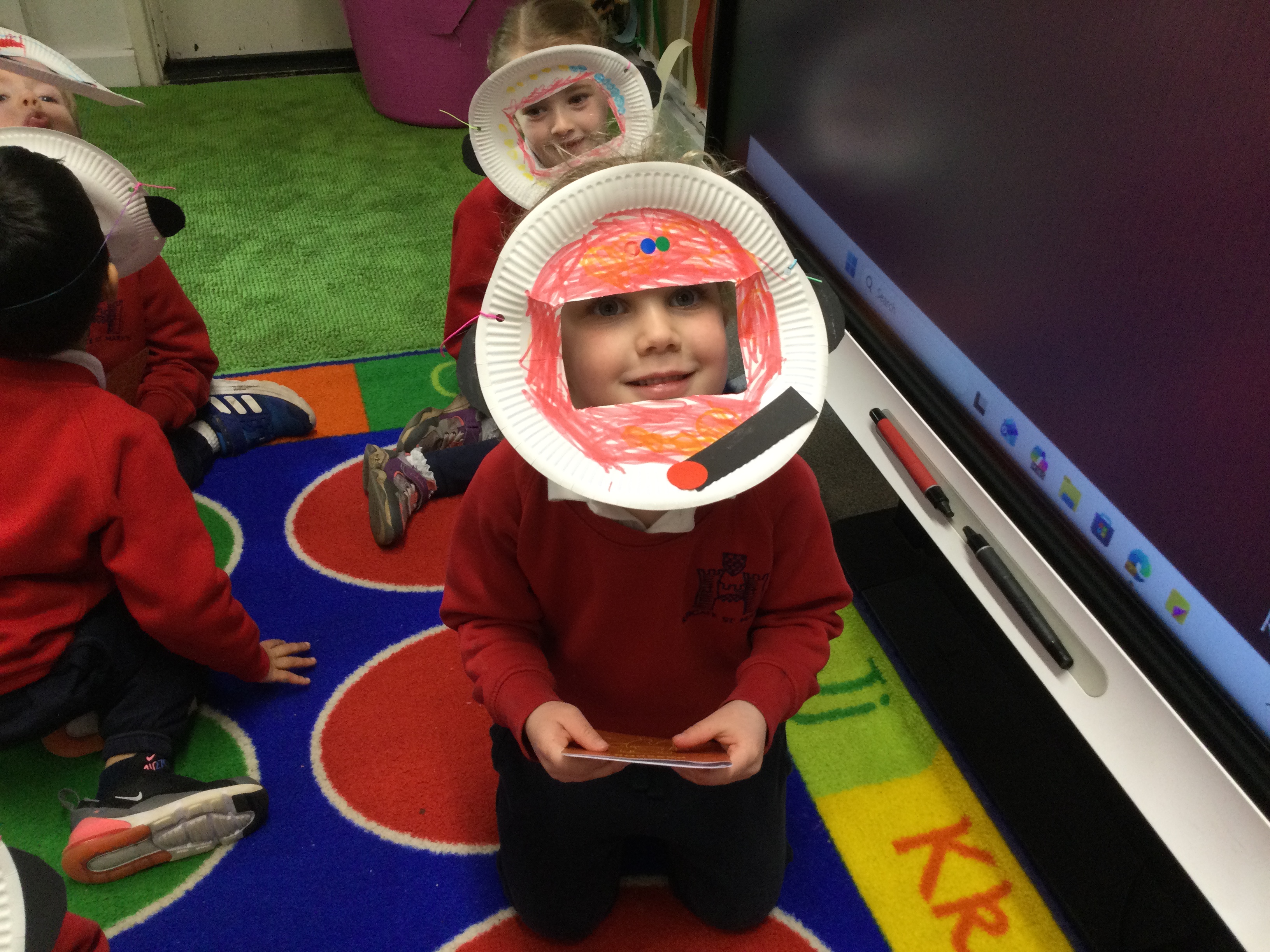The children designed and created their own space passports and astronaut helmets, carefully preparing for their important mission. Before setting off on our mission, we learned a fun fact about each planet and brought our learning to life through movement. We crouched down small like Mercury, got very hot on Venus, searched carefully for possible aliens on Mars, pretended to be blown around in a huge storm on Jupiter, spun round and round like the rings of Saturn, shivered in the cold on Uranus, and blew strong winds on Neptune. The children had so much fun acting out each planet while reinforcing the new facts they had learned.