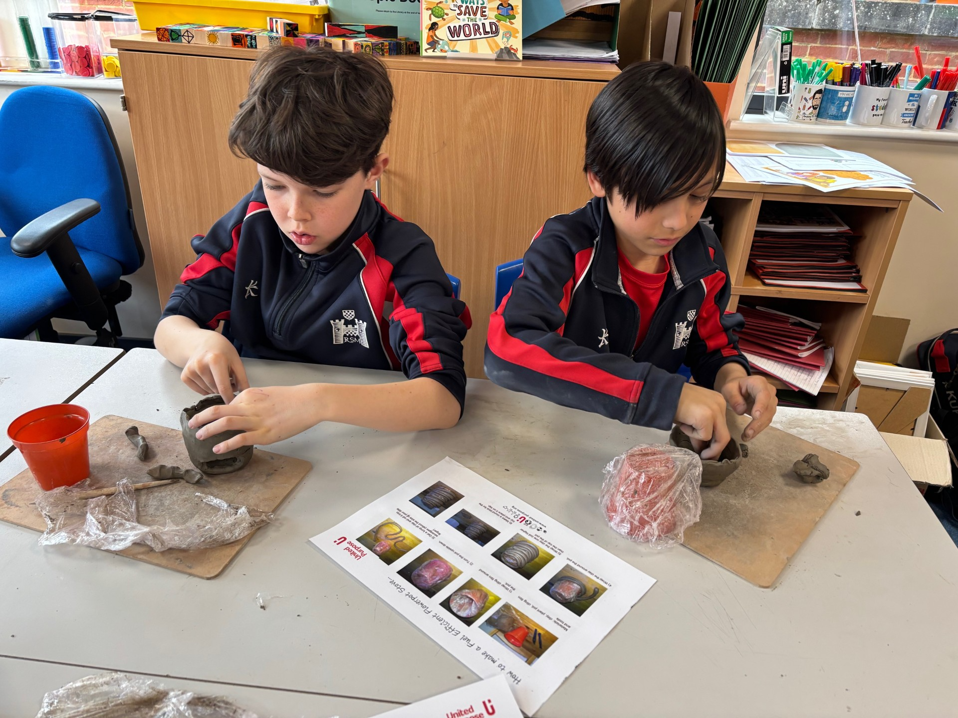 Year 5 have been learning about Flowerpot Stoves and how they are used in countries such as Malawi to cook food more efficiently. These stoves require a third less wood than an open fire, helping to save time and protect valuable tree resources. The children thoroughly enjoyed making their own flowerpot stoves out of clay, before putting them to the test by melting chocolate and dipping marshmallows, bananas, and biscuits into it.
