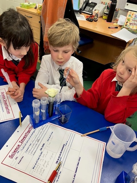 In Science, the children investigated how water is transported through the stem of a plant. After making predictions, they set up a fair test and were delighted to see clear results showing how water travels upwards through the stem. Their excitement and curiosity made for a brilliant practical lesson, helping them deepen their understanding of how plants survive and grow.