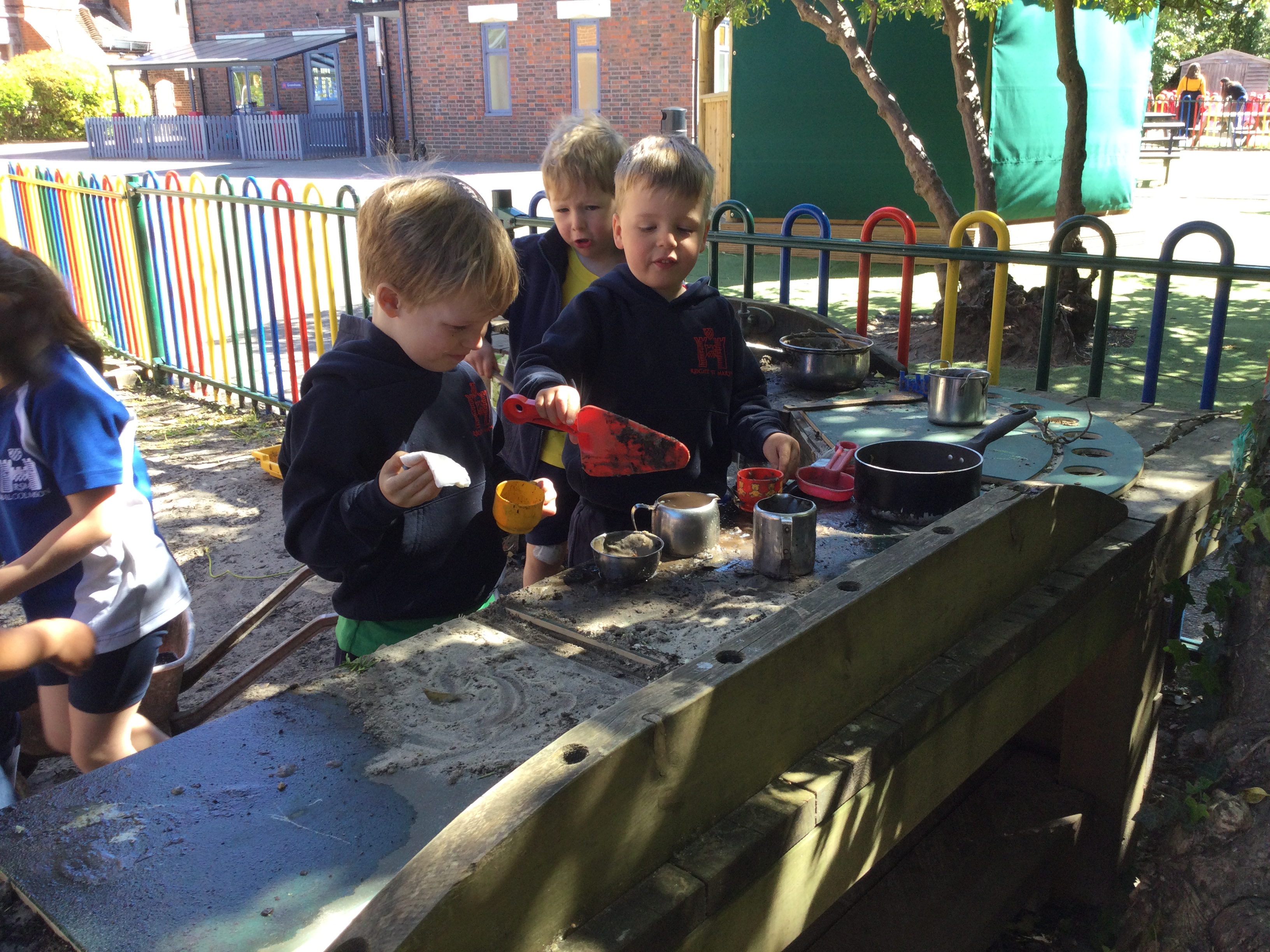 Outside, there has been plenty of experimenting in the water play area, as well as imaginative cooking in the mud kitchen. The climbing equipment has been a popular choice too, with children challenging themselves physically and building confidence.